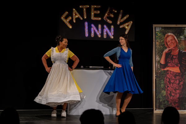 Richt und Phyllis Green) mit Beamerbildern als Bühnenbild und
